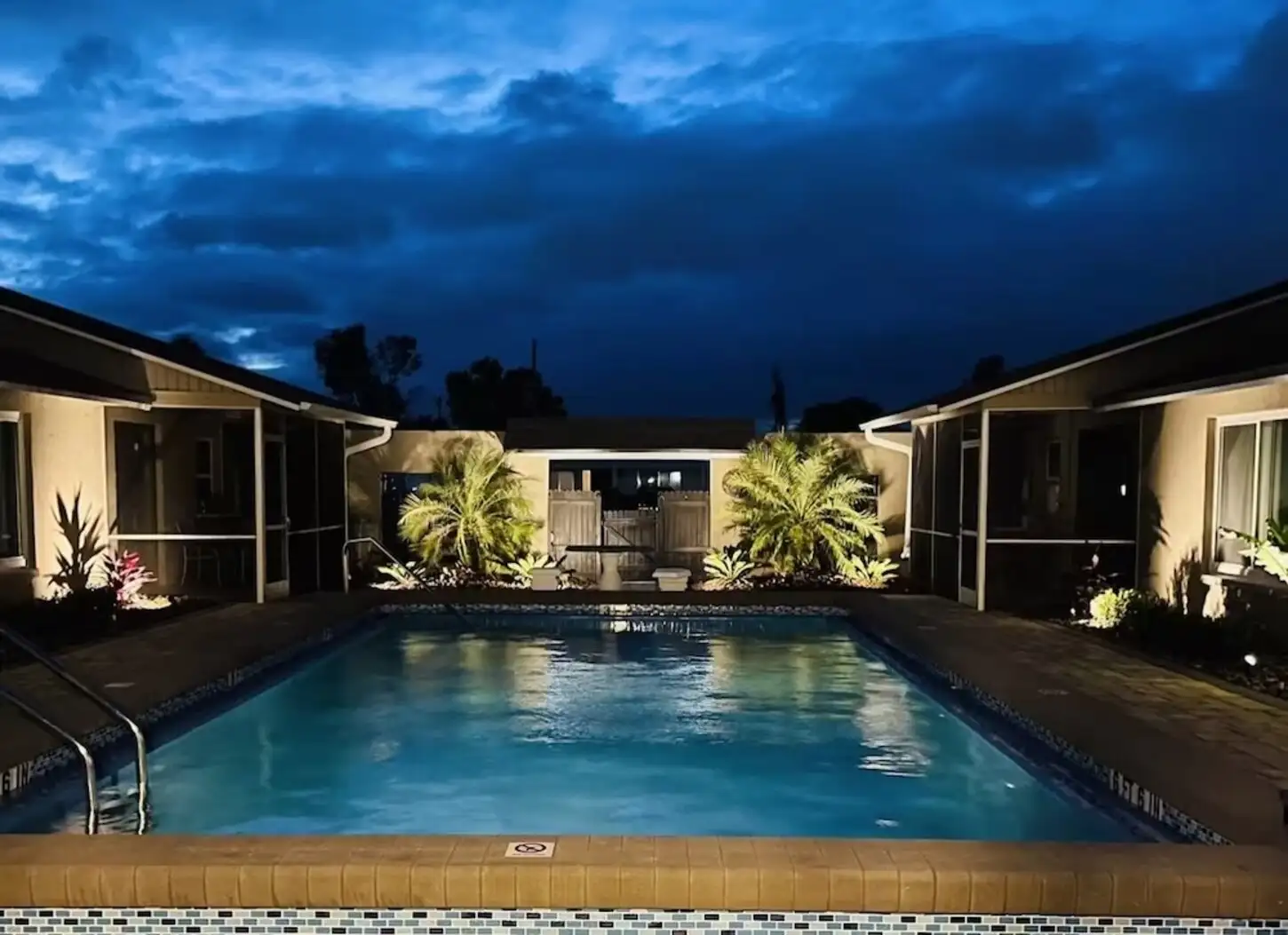 "The place was as pictured and described. Comepletly renovated and tastefully decorated. It is the perfect place to stay with other families or friends, you can share the common pool area, but retreat to your own place as needed. We were there on our own, with the other 3 units occuppied by 2 couples from Ohio (who knew each other) and a couple from Michigan. We all got alaong very well and spent many afternoons gathered around the pool as a group.The pool was not used in January, as it was not heated. The owner, Tom, was on site for a visit during our stay and decided to add a heater to the pool. Tom, was very responsive to any concerns, though we had very few. Great place."