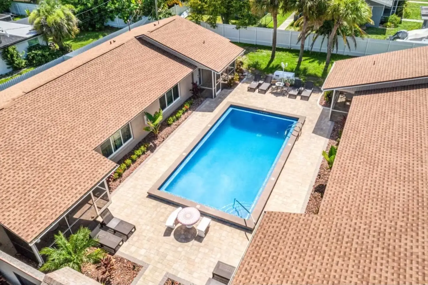 Step outside, and you'll discover a tropical paradise just steps away from your door. The highlight of the property is a large inground pool, perfect for relaxation and enjoyment under the Florida sun. Whether you want to take a refreshing swim, soak up the sun on comfortable lounge chairs, or socialize with friends and family by the poolside, this vacation rental has everything you need for a memorable stay.